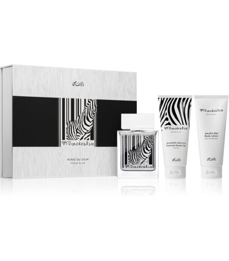 Rasasi Rumz du Jour pour Elle, , Sets for women for Women, Boost the intensity of your favourite fragrance. In addition to the fragrance itself, the Rasasi Rumz du Jour pour Elle women’s perfume set also contains skincare products with the corresponding fragrance. This ensures that your daily routine will be a perfect match with your fragrance and your sensual experience will be extended. Characteristics: scented products will enhance the longevity of your fragrance amazing as a gift a treat for any woman The set contains: Rasasi Rumz Al Rasasi Zebra Pour Elle Eau de Parfum 50 ml Perfumed Shower Gel 100 ml Perfumed Body Lotion 100 ml ...