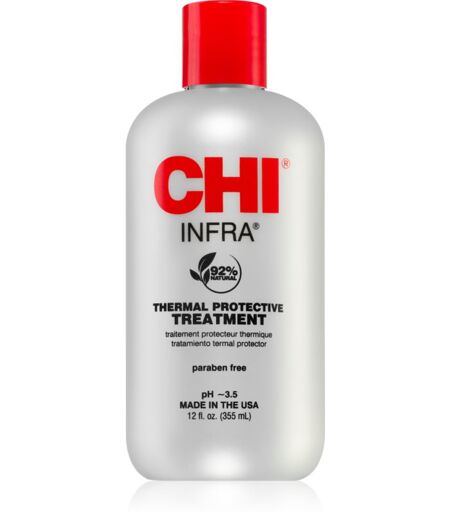 CHI Infra, 355 ml, Heat Protection for Women, Do you feel that your hair needs more intensive care than conditioners or balsams can provide? A hair mask from CHIInfra will perfectly enrich your hair care routine. Thanks to its high concentration of nourishing ingredients aimed at tackling specific problems, it restores vitality and beauty to your hair. It penetrates deep into the hair fibres to strengthen them, nourish them intensively, promote their regeneration and smooth their surface, leaving them beautifully soft to the touch, radiantly shiny, but also more resilient to damage. Characteristics: strengthens the hair fibre regenerates the hair along its entire length gives hair a brilliant shine protects hair against high temperatures extends the life of hair dye How to use: Wash with shampoo, then apply to damp hair. Leave to act as instructed on the packaging, then rinse thoroughly. ...