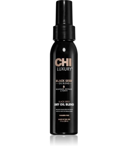 CHI Luxury Black Seed Oil Dry Oil Blend, 89 ml, Dry Hair Oils for Women, Do you want to give your hair more than just the basic care provided by a shampoo or conditioner, but at the same time avoid that unwanted greasy feeling? A dry oil from CHILuxury Black Seed OilDry Oil Blend is a great addition to your hair care routine - it gives your hair an extra dose of nourishment, yet is absorbed very quickly. It will help restore suppleness, pliability and overall flexibility of the hair, promote its regeneration and last but not least, it will take care of smoothing its surface. The result will be silkier, softer hair with a healthy shine and less tendency to frizz. Characteristics: deeply nourishes hair gives hair strength and elasticity prevents frizzy hair gives hair shine does not weigh hair down Ingredients: no sulphates How to use: Apply to the lengths and ends of dry or wet hair. Do not rinse. ...