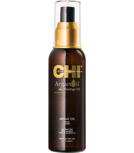 CHI Argan Oil, 89 ml, Classic Hair Oils for Women, Do you feel that your hair needs more than just the care provided by shampoo, conditioner or perhaps a mask? A classic hair oil from CHIArgan Oil will perfectly enrich your hair care routine - it will give your hair an extra dose of nourishment, help restore its elasticity, pliability and overall flexibility, support its regeneration and last but not least, take care of smoothing its surface. The result will be silkier, softer hair with a healthy shine and less tendency to frizz. Characteristics: repairs damaged hair structure significantly regenerates and protects hair makes hair velvety smooth gives hair shine Ingredients: no sulphates How to use: Apply to the lengths and ends of dry or wet hair. Style your hair as usual. ...
