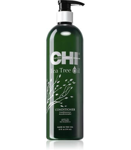 CHI Tea Tree Oil Conditioner, 739 ml, Hair Conditioners for Women, During hair washing, shampoo opens the external hair structure - the cuticle. That's why it's important to give your hair a treatment after washing to reseal the cuticle. And that's exactly what the conditioner from CHITea Tree OilConditioner takes care of. In addition to closing the hair fibre, it ensures its nourishment, hydration and softness, without which beautiful, shiny and healthy hair cannot do without. It will protect the hair from mechanical damage and dryness, as well as smooth the surface and help soften it, which will make it easier to detangle and further styling. Characteristics: provides the necessary hydration ensures brilliant shine improves the structure of the hair soothes an irritated scalp Ingredients: no sulphates How to use: Apply after first washing with shampoo. Leave to act for a while, then rinse thoroughly. ...