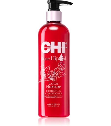 CHI Rose Hip Oil Conditioner, 340 ml, Hair Conditioners for Women, During hair washing, shampoo opens the external hair structure - the cuticle. That's why it's important to give your hair a treatment after washing to reseal the cuticle. And that's exactly what the conditioner from CHIRose Hip OilConditioner takes care of. In addition to closing the hair fibre, it ensures its nourishment, hydration and softness, without which beautiful, shiny and healthy hair cannot do without. It will protect the hair from mechanical damage and dryness, as well as smooth the surface and help soften it, which will make it easier to detangle and further styling. Characteristics: provides the necessary hydration makes hair colour last longer ensures brilliant shine improves the structure of the hair Ingredients: no sulphates How to use: Apply after first washing with shampoo. Leave to act for a while, then rinse thoroughly. ...