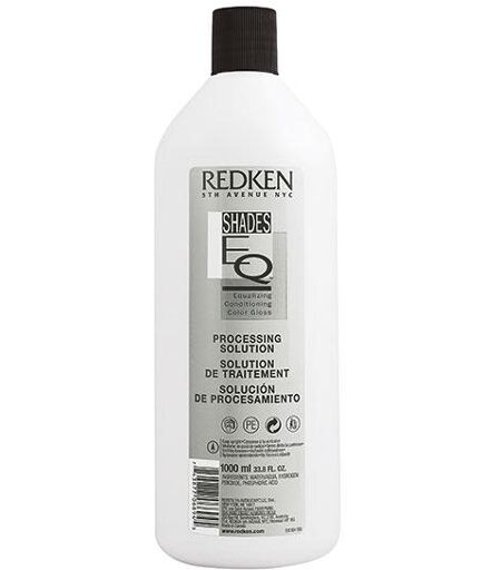 The developer specialized in Shades EQ Gloss: a hydrogen peroxide developer with about 7 times the volume. Specially designed to maintain an acidic pH and stabilize viscosity.ensures the right tone, depth and durability when applied together with Shades EQ GlossDoes not lift the hair's natural pigment Application: Mix in a 1:1 ratio with Shades EQ Gloss. Shades EQ Gloss can be applied with a tray and brush or bottle and diluted with Crystal Clear to reduce intensity or adjust shades. Leave on at room temperature for 20 minutes - up to 40 minutes for gray hair. For resistant hair, leave on for 15 minutes with a plastic cap under preheated warm dryer. Remove cap and leave to cool for 5 minutes. For resistant gray hair, leave on for 20 minutes with a plastic cap under preheated warm dryer. Remove cap and leave on for an additional 20 minutes at room temperature. Then use Color Extend shampoo and conditioner. NOTE: No other developer can replace the Processing Solution. This would lead to unpredictable results. ...