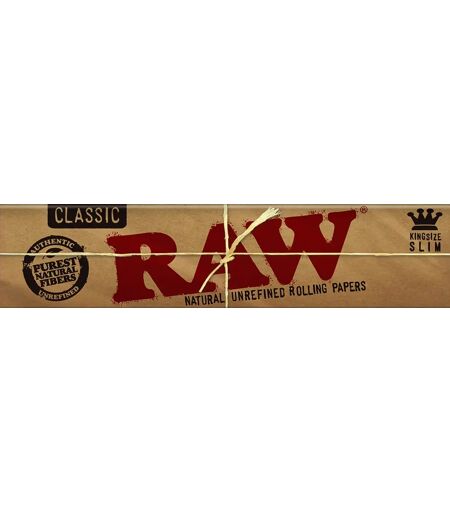 RAW Classic Kingsize Slim papers are designed for customers who prefer a longer burn. At RAW, they have stayed true to their roots and produce this unrefined plant paper with natural tree sap gum for an experience that is truly opRAWd. RAW paper is made from organic plants and plant starch. RAW papers contain a perfect blend of naturally unbleached plant fibers and are finished with an all-natural gum layer that matches the burn rate of the paper. Each sheet naturally holds together due to our high fiber content, and then is perfectly pressure watermarked with our patented Criss-Cross imprint to help prevent dripping and maintain the smoothest burn.Made from naturally unrefined plants RAW Papers use pure, natural organic acacia gum that is sustainably harvested in the Ethiopia/Senegal region. Acacia resin is harvested from the trees in a manner similar to maple syrup, then filtered and pasteurized before being applied to our paper. RAW paper is made from natural plants with zero burning additives.No GMOs or animal products are used in the production process, and RAW's pure organic gum is vegan-friendly and natural. RAW Papers contain ABSOLUTELY NO ADDED LAMPS, COLORS, GALACTOMANE DERIVATIVES OR BURNING ADDITIVES!!! These unpleasant chemicals can affect the taste of the smoke. Special Criss-Cross watermark No genetically modified organisms No chlorine or bleach Vegan Friendly Product No added chalk or dyes 32 sheets per pack Size: 110x44 mm Made in Spain 50 packs per box At the time of sale (in the shop / via a transport service / via another dispensing point), the seller will verify that the buyer is not under 18 years of age. ...