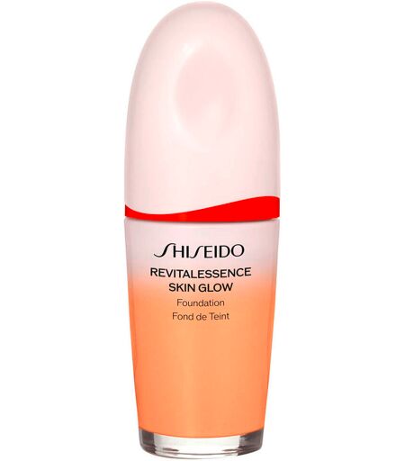 An intensively nourishing foundation that gives the skin a healthy radiant glow. Thanks to fermented kefir and niacinamides, the foundation contains the same amount of effective skin care ingredients as a serum from SHISEIDO. After using for just one week*, skin is visibly more even, smoother and hydrated. Medium coverage. Healthy + radiant finish. 12H Hold**. 24H Moisture**. *: Consumer test with 109 women **: Clinically tested on 31/27 women. Dermatologically tested. Non-comedogenic. Suitable for all skin types. Application: Shake well before use.Hold the bottle at an angle and press down on the dispenser to apply the foundation.Apply foundation after skincare routine, spreading foundation from the center of the face outward.Apply additional layers of foundation to achieve desired coverage.Clean the dispenser after use and replace the cap. The joint use of the foundation and products with UV protection is recommended. Tip: REVITALESSENCE SKIN GLOW Foundation can be applied in different ways to achieve different effects. For a particularly even finish, apply REVITALESSENCE SKIN GLOW Foundation with the fingertips. The warmth from the fingertips makes it easy to distribute the foundation on the skin. For additional coverage , use REVITALESSENCE SKIN GLOW Foundation together with the DAIYA FUDE Face Duo Brush. Apply the foundation with the Gel Blender and blend with the diamond-shaped brush to achieve an even effect.For a flawless finish, apply REVITALESSENCE SKIN GLOW Foundation with the HASU FUDE Foundation Brush after using SYNCHRO SKIN SELF-REFRESHING Concealer. For added radiance, apply SYNCHRO SKIN Invisible Loose Powder Radiant with the MARU FUDE Face Brush after using REVITALESSENCE SKIN GLOW Foundation.Shades with a yellow/gold base counteract redness, while shades with a reddish/pink base even out pale skin tones. ...