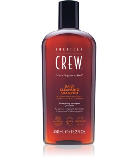 American Crew Daily Cleansing Shampoo, 450 ml, Shampoos for Men, In order to keep your hair healthy, shiny and vibrant, it's important to give it the proper care. And that starts with regular hair washing. A shampoo from American CrewDaily CleansingShampoo will help to effectively remove any dirt, grease and styling and cosmetic product residues from the hair and scalp. It gives you a feeling of freshness and cleanliness, and ideally prepares your hair and scalp for further care while supporting the effects of the active ingredients it contains. Characteristics: washes hair and cleans the scalp regenerates and nourishes hair strengthens the hair fibre adds shine and volume leaves hair soft a product specially developed for men’s needs How to use: Apply an appropriate amount of shampoo to wet hair. Work up a lather and rinse thoroughly. ...