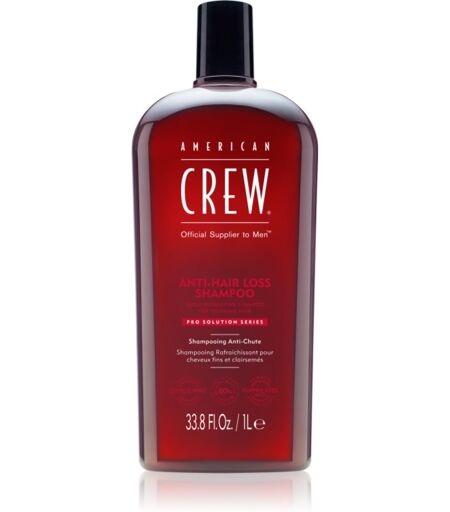 American Crew Anti-Hairloss Shampoo, 1000 ml, Shampoos for Men, In order to keep your hair healthy, shiny and vibrant, it's important to give it the proper care. And that starts with regular hair washing. A shampoo from American CrewAnti-HairlossShampoo will help to effectively remove any dirt, grease and styling and cosmetic product residues from the hair and scalp. It gives you a feeling of freshness and cleanliness, and ideally prepares your hair and scalp for further care while supporting the effects of the active ingredients it contains. Characteristics: washes hair and cleans the scalp regenerates and nourishes hair strengthens the hair fibre prevents premature hair loss leaves hair soft a product specially developed for men’s needs How to use: Apply an appropriate amount of shampoo to wet hair. Work up a lather and rinse thoroughly. ...