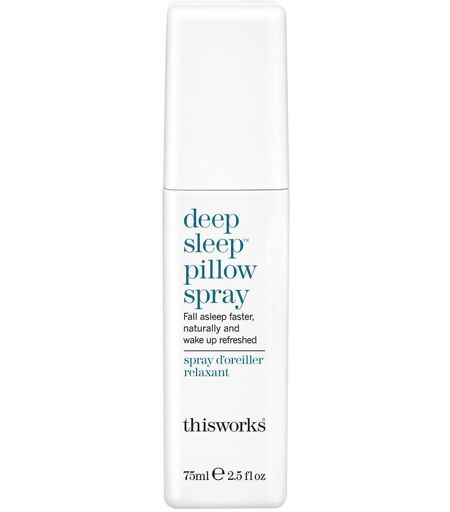 Enjoy a good night's sleep with the deep sleep pillow spray from This Works. A real bestseller. It has been proven to help you fall asleep faster and wake up more refreshed the next morning. 89% of users slept faster than normal, a 98% of users felt refreshed in the morning* WHEN: Spray a few spritzes on your pillow just before bedtime to reduce sleep-related anxiety and improve sleep quality. HOW: This natural, award-winning blend of lavender, vetiver and chamomile soothes the body and mind. WHY: During sleep, skin damage is repaired and toxins are removed, making sleep the ultimate beauty secret. Can be used during pregnancy. *Independent study of 200 subjects (age 18+), including 100 former ex-prescription users, compared to no product Directions: Spray a fine mist over your pillow. Keep away from children. Suitable for children aged 3 years and over; use only under supervision. Avoid contact with eyes. For external use only. May cause an allergic skin reaction. If a skin reaction occurs: Wash off with plenty of soap and water. If skin irritation or rash occurs, please consult a doctor. ...