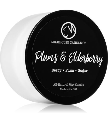 Milkhouse Candle Co. Creamery Plums & Elderberry, 106 g, Scented Candles Home Scents, The Milkhouse Candle Co. Creamery Plums & Elderberry scented candle will give your home a wonderful fragrance and create a cosy atmosphere that will make you feel great all the time. Ingredients: mix of plant waxes 100% natural ingredients paraffin-free non-toxic formula GMO-free lead-free wick with essential oils How to use: Place the candle on a heat-resistant surface. Do not leave to burn for more than four hours. Never let the candle burn to the end. Never leave a burning candle unattended or close to easily flammable objects. Keep out of the reach of children and pets. Always let the candle burn until the surface completely melts to prevent an unwanted hollow in the wax from forming. For optimal burning, we recommend regularly trimming the wick down to the recommended length. ...