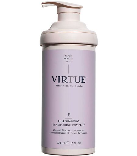 More volume for fine, weak hair for maximum movement and bounce. Virtue® Full Shampoo cleans and gives your hair more volume at the same time. It dissolves excess oil, loosens hair roots and adds volume to each strand for weightless, long-lasting fullness. Full Shampoo and Conditioner with Alpha Keratin 60ku® protein, the first of its kind, are specifically designed to add volume and density to fine and weak strands of hair. These exceptionally lightweight formulas help build volume from within and improve hair health over time. Directions: Lather a fifty-cent portion of shampoo between the palms of your hands. Apply to wet hair, lather to a rich foam, massage and rinse. Then apply Full Conditioner, rinse thoroughly. ...