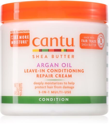 CANTU Shea Butter Leav-In Cond Cream, 453 g, Hair Conditioners for Women, During hair washing, shampoo opens the external hair structure - the cuticle. That's why it's important to give your hair a treatment after washing to reseal the cuticle. And that's exactly what the conditioner from CANTUShea ButterLeav-In Cond Cream takes care of. In addition to closing the hair fibre, it ensures its nourishment, hydration and softness, without which beautiful, shiny and healthy hair cannot do without. It will protect the hair from mechanical damage and dryness, as well as smooth the surface and help soften it, which will make it easier to detangle and further styling. Characteristics: provides the necessary hydration protects against negative environmental effects repairs both mechanical and chemical damage protects hair against damage prevents hair breakage strengthens the hair fibre Ingredients: no silicones no sulphates vegan product argan oil – hydrates hair, adds shine, helps prevent breakage and promotes elasticity shea butter – deeply hydrates and nourishes hair, restores shine and helps repair damage How to use: Apply after first washing with shampoo. Leave to act for a while, then rinse thoroughly. ...
