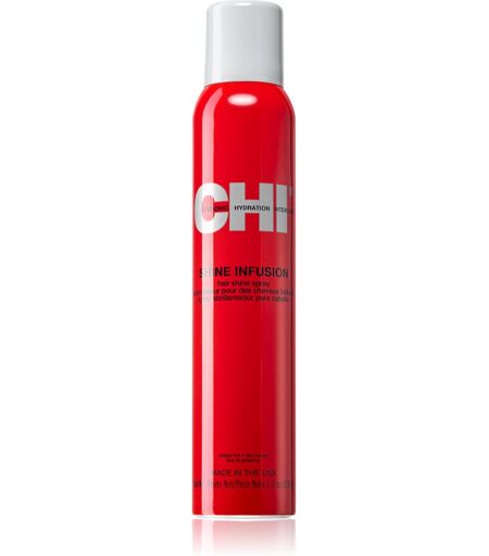 CHI Shine Infusion, 150 g, Hair Glosses for Women, Hairspray from CHIShine Infusion will take care of the final finish and prolong the durability of your hairstyle. It reinforces and holds your hair in place for an extended period of time, no matter how complex, ensuring maximum control over your hair. You will be able to rely on the fact that each strand will remain in place and be protected from external influences such as the wind or humidity. Characteristics: gives total hold for all hair types and styles gives your hair vitality and shine has a fresh scent How to use: Shake well before use. Spray onto dry hair from a distance of 20–30 cm. ...