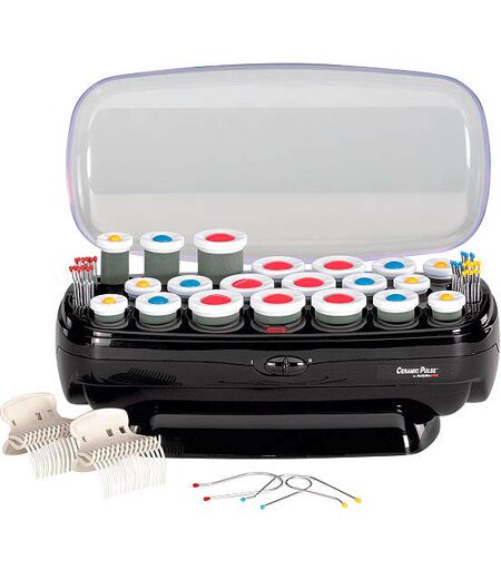 Ceramic and velvet coated heating curlers for professional use. Ceramic keeps the heat long and distributes it well. 8 curlers large (Ø 32 mm), 6 curlers medium (Ø 26 mm), 6 curlers small (Ø 20 mm).20 butterfly clips, 20 clip needlesHeating up within 5 minutes400 Watt, 230 VoltDevice warranty 2 yearsPlease note: Device is equipped with the EU type network plug ...