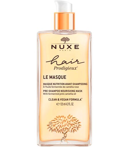 Hair Prodigieux® - Catch the light! Your hair revolution thanks to the perfecting power of fermented pink camellia oil! The Nourishing Pre-Shampoo Mask was developed based on Laboratoire Nuxe's expertise in plant oils and is a truly exceptional treatment. This mask with fermented pink camellia oil intensively nourishes and repairs the hair fibers. This oil treatment with the cult fragrance of Huile Prodigieuse® wraps itself around the hair for an innovative sensual ritual. Hair shines beautifully and feels irresistibly silky soft. From the first application (1): - 95% of users find that their hair is silky soft - 91% of users find that their hair is moisturized - 100% of users find that their hair is light After 12 applications (2): - Optimally nourished hair: + 50 % supply - Even more intense shine: + 48 % shine (1) User test - 22 women - % of immediate satisfaction after application. (2) Instrumental test on one strand - % of improvement after 12 applications. 98% ingredients of natural origin. Care formulated and manufactured in France. How to use: Apply the treatment to dry hair before the Hair Prodigieux® shampoo, avoiding contact with the eyes. Leave on for 10 minutes, then rinse and wash the hair. For intensive repair, leave the treatment on dry hair for 30 minutes. Then rinse and wash the hair. ...