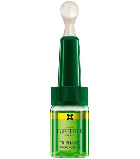 Serum for hereditary hair loss. Hormonal or hereditary, thinning hair. With targeted and proven action on three areas responsible for constitutional hair loss: Vessels, Hormones and Tissues. Exclusive, patented formulation with 3 phases of active ingredients: slows hair loss, maintains hair stock, stimulates hair growth and prolongs the life cycle of hair. Content: 8 ampoules of 5.5 ml. Application: Mix the 3-phase product by shaking. After shampooing, apply one vial parting by parting to clean and damp scalp. Massage in to help the product penetrate. Do not rinse. Use as an intensive treatment 2 times a week for one month, then 1 time a week for two months. 2 packs = 3-month course of treatment. TriphasicVHTATP Intensif - ideal for conditional hair loss. Care ritual for hair loss, with Pfaffia extract (ginseng). +4583 hairs. Average number of hairs in the hair loss zone (40% of the scalp surface on average); results after 3 months. Clinical study with 19 subjects.Natural basedATP= Adenosine Tri-PhosphatePfaffia extract (ginseng extract): Stimulates blood circulation and thereby hair growth. As an elixir of life, this mythical active ingredient with its incomparable benefits optimally supplies the hair with essential substances for healthy growth and active blood circulation by stimulating the VEGF growth factor. Its action on hair loss is patented.Vit PP + Essential Oils: Additional vasodilator effect.Curbicia extract (Pierre Fabre patent): Regulates sebum production. Curbicia is extracted by hydrolysis from pumpkin seeds in a process patented by René Furterer and, thanks to this method, has three times the sebum-regulating effect. The active ingredient is ideal for treating rapidly oily scalps and permanently regulates sebum overproduction in the sebaceous glands, one of the main causes of constitutional hair loss.ATP: Important energy supplier and exclusive innovation against hair loss): acts directly in the heart of the hair papilla to prolong the life of the hair (prolonging anagen phase).Licorice extract: protection of the hair. Stearylglycirrhetinate obtained from natural licorice extract relieves hair follicle inflammation, which is a major cause of hair loss.Vitamin B6: Important for hair growth .TRIPHASICVHTATP Intensif counteracts 3 factors responsible for constitutional hair loss: Vascular factor: Pfaffia extract stimulates blood circulation.Hormonal factor: Hydrolyzed Curbicia extract regulates sebum productionRelated to the tissue factor, the serum acts in two ways: 1. ATP (important energy supplier and exclusive innovation against hair loss): acts directly in the heart of the hair papilla to prolong the life of the hair. The hair becomes denser and the scalp is less visible. Vigorous hair growth is stimulated and hair loss is slowed down. The hair stock is preserved and the life cycle of the hair is extended. 2. orange essential oil and stearyl glycyrrhetinate: protect the hair. From the first month the hair becomes denserand the... ...
