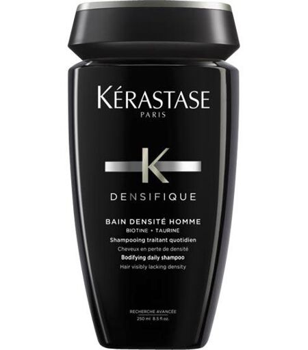 Strengthening, densifying shampoo. Daily care hair bath for men with hair visibly suffering from lack of density. The hair regains fullness and density. The hair feels grippy and strengthened. BIOTIN: improves quality of the root environment. TEXTURING POLYMERS: have an immediate densifying effect on the hair fiber. With BIOTIN + TEXTURING POLYMERS. Ideal for thinning hair. Application: Apply to wet hair, emulsify and rinse. Densifique - program for hair fullness and density. In 2016, Kérastase creates two Densifique programs, adapted to the different needs of men and women. Both programs combine glycobiology with Stemoxydine® to maintain the density* and fullness of the hair and improve the feel and look of the hair. The hair fiber looks lifted. After 3 months, the program helps maintain hair density. With more than 1000 newly exposed hairs.* (*Clinical test. 101 subjects vs placebo. Daily use for three months). Recognizing the needs of men, Kérastase has dedicated a three-month ritual to you that addresses several indicators of declining hair density: Stemoxydine®, the patented molecule was inspired by stem cell research and increases hair density.Complex Glycan, which comes from glycobiology, in combination with Stemoxydine® promotes hair fullness and improves the grip and appearance of the hair.Arginine nourishes the hair and promotes microcirculation on the scalp.Biotin - better known as vitamin B6 - improves hair quality.Texturizing polymers strengthen the hair fiber. ...