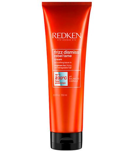 The leave-in hair treatment smoothes uncontrollable frizz and gives the hair silky shine. The care formula with babassu oil moisturizes and protects hair from heat. The hair is tamed and becomes easier to comb. For healthy hair and less frizz. Fashion, inspiration, innovation - this is Redken 5th Avenue NYC. The Redken hair care products are tailored to different needs and thus guarantees a simple and at the same time optimal hair care routine - at the hairdresser and in your own bathroom. Discover the perfect care for your hair and experience the professional Redken expertise now easily at home. As a leave-in hair mask Redken Frizz Dismiss Rebel Tame protects the hair long-lasting. The moisturizing and nourishing babassu oil regenerates dry, brittle and damaged hair. At the same time, the Smoothing Complex smoothes frizzy and uncontrolled hair. The hair mousse envelops the hair, giving it surface smoothness, preventing frizz and static. The smoothing effect tames the hair and keeps it silky smooth even in extreme conditions such as dry heating air or high humidity. The smoothing effect can be further enhanced if the Redken Frizz Dismiss Shampoo is used to wash the hair. The hair mask is kneaded into towel-dried hair after shampooing and not rinsed out. This makes the hair easier to comb and protects it from heat damage during subsequent styling. For optimal styling, the hair should be divided into several partitions before applying Redken Frizz Dismiss Rebel Tame. If necessary, distribute another small amount of Rebel Tame in the ends of the hair after blow-drying to give the hair maximum suppleness and smoothness. The leave-in hair treatment is ideal for all hair types that require special care such as dry and brittle hair, brittle and damaged hair, as well as for frizzy hair prone to frizz and static. The formula does not weigh down the hair and here leaves a pleasant light feeling and a look like fresh from the stylist. Application: Apply the cream treatment after shampooing in towel-dried hair. Work a 10-cent amount into the lengths and ends of the hair. Then style as usual. ...