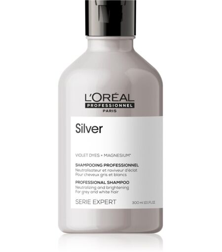 L’Oréal Professionnel Serie Expert Silver, 300 ml, Shampoos for Women, In order to keep your hair healthy, shiny and vibrant, it's important to give it the proper care. And that starts with regular hair washing. A shampoo from L’Oréal ProfessionnelSerie ExpertSilver will help to effectively remove any dirt, grease and styling and cosmetic product residues from the hair and scalp. It gives you a feeling of freshness and cleanliness, and ideally prepares your hair and scalp for further care while supporting the effects of the active ingredients it contains. Characteristics: neutralises yellow undertones in your hair regenerates and nourishes hair How to use: Apply an appropriate amount of shampoo to wet hair. Work up a lather and rinse thoroughly. Repeat if necessary. For best results, follow up with other products from the same range. ...