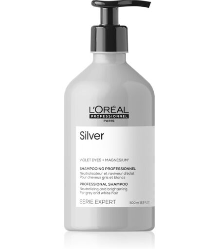 L’Oréal Professionnel Serie Expert Silver, 500 ml, Shampoos for Women, In order to keep your hair healthy, shiny and vibrant, it's important to give it the proper care. And that starts with regular hair washing. A shampoo from L’Oréal ProfessionnelSerie ExpertSilver will help to effectively remove any dirt, grease and styling and cosmetic product residues from the hair and scalp. It gives you a feeling of freshness and cleanliness, and ideally prepares your hair and scalp for further care while supporting the effects of the active ingredients it contains. Characteristics: neutralises yellow undertones in your hair regenerates and nourishes hair How to use: Apply an appropriate amount of shampoo to wet hair. Work up a lather and rinse thoroughly. Repeat if necessary. For best results, follow up with other products from the same range. ...