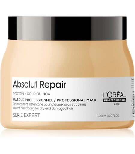 L’Oréal Professionnel Serie Expert Absolut Repair, 500 ml, Hair Masks for Women, Do you feel that your hair needs more intensive care than conditioners or balsams can provide? A hair mask from L’Oréal ProfessionnelSerie ExpertAbsolut Repair will perfectly enrich your hair care routine. Thanks to its high concentration of nourishing ingredients aimed at tackling specific problems, it restores vitality and beauty to your hair. It penetrates deep into the hair fibres to strengthen them, nourish them intensively, promote their regeneration and smooth their surface, leaving them beautifully soft to the touch, radiantly shiny, but also more resilient to damage. Characteristics: regenerates the hair along its entire length moisturises intensely restores hair structure makes it easy to comb through and prevents damage How to use: Wash with shampoo, then apply to damp hair. Leave to act as instructed on the packaging, then rinse thoroughly. ...