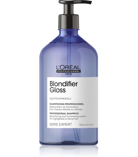 L’Oréal Professionnel Serie Expert Blondifier, 500 ml, Shampoos for Women, In order to keep your hair healthy, shiny and vibrant, it's important to give it the proper care. And that starts with regular hair washing. A shampoo from L’Oréal ProfessionnelSerie ExpertBlondifier will help to effectively remove any dirt, grease and styling and cosmetic product residues from the hair and scalp. It gives you a feeling of freshness and cleanliness, and ideally prepares your hair and scalp for further care while supporting the effects of the active ingredients it contains. Characteristics: washes hair and cleans the scalp regenerates and nourishes hair prolongs hair colour for both natural and dyed hair How to use: Apply an appropriate amount of shampoo to wet hair. Work up a lather and rinse thoroughly. Repeat if necessary. For best results, follow up with other products from the same range. ...