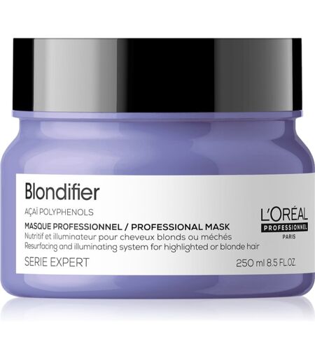 L’Oréal Professionnel Serie Expert Blondifier, 250 ml, Hair Masks for Women, Do you feel that your hair needs more intensive care than conditioners or balsams can provide? A hair mask from L’Oréal ProfessionnelSerie ExpertBlondifier will perfectly enrich your hair care routine. Thanks to its high concentration of nourishing ingredients aimed at tackling specific problems, it restores vitality and beauty to your hair. It penetrates deep into the hair fibres to strengthen them, nourish them intensively, promote their regeneration and smooth their surface, leaving them beautifully soft to the touch, radiantly shiny, but also more resilient to damage. Characteristics: regenerates the hair along its entire length makes it easy to comb through and prevents damage extends the life of hair dye neutralises yellow undertones in your hair for both natural and dyed hair How to use: Wash with shampoo, then apply to damp hair. Leave to act as instructed on the packaging, then rinse thoroughly. ...