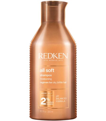 The repairing shampoo with argan oil works against dry hair and stressed ends. It intensively moisturizes and strengthens brittle hair from the roots. The mild hair shampoo gently nourishes and gives vibrant shine without weighing it down. Fashion, inspiration, innovation - that is Redken 5th Avenue NYC. The Redken hair care products are tailored to different needs and thus guarantees a simple and at the same time optimal hair care routine - at the hairdresser and in your own bathroom. Discover the perfect care for your hair and experience the professional Redken expertise now easily at home. Revitalize and hydrate your dry hair with Redken All Soft hair care for hairdressing and at home. The All Soft Shampoo provides mild cleansing for dry and brittle hair. An RCT protein complex nourishes hair from roots, through mid-lengths to ends. Enriched with Omega-6 and Argan oil, the conditioning shampoo also provides intense softness. The hair is silky soft after shampooing, can be styled better and gets suppleness and shine. Application: Distribute an approximately 10-cent amount of the hair shampoo in wet hair and massage gently. Then rinse the hair. For long-lasting suppleness and intense shine, in addition to the conditioning shampoo, also use the All Soft Conditioner as well as the All Soft Heavy Cream Hair Treatment for dry hair. ...