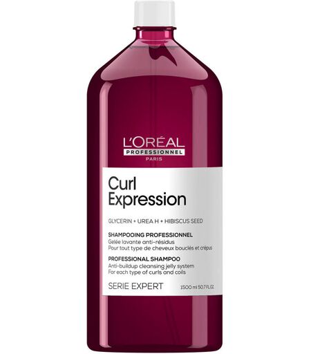 Curl Expression Anti-Buildup Cleansing Jelly from L'Oréal Professionnel Paris is specially formulated for curly, wavy and frizzy hair. Enriched with glycerin, urea H and hibiscus seed extract, the professional formula gently cleanses curly and frizzy hair and removes residue. Use: Distribute evenly through wet hair, lather and then rinse thoroughly. Our technology based on 3 active ingredients. Urea H: This ingredient, naturally occurring in the skin, has a dual action: it preserves moisture and strengthens the acid mantle.Glycerin: This plant-based ingredient is known for its moisturizing effect as it binds water. Due to its concentration, glycerin provides long-lasting moisture to even the driest hair fibers.Hibiscus Seed Extract: This particularly rich natural source of amino acids and high-quality vitamins is deeply rooted in African beauty rituals. It has long been extracted from the heart of the hibiscus flower and is an exceptional contributor to hair moisture, strength, shine and softness, as well as curl definition. Curl Expression Curls are naturally different. They require special care and styling products. Through the highly effective active ingredients glycerin, urea H and hibiscus seed extract, Curl Expression provides definition and a frizz-free result, in addition to optimal hydration. ...