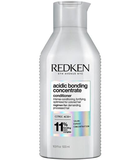 Redken Acidic Bonding Concentrate Shampoo is Redken's most concentrated all-in-one formula for the ultimate repair and care of damaged hair. This ultra-rich and luxurious shampoo provides maximum repair, intensive care and protection against color loss. The shampoo contains a concentrated bonding care complex and citric acid. This strengthens weakened sulfite bonds in the hair and minimizes hair breakage. This pH-balancing shampoo is specially formulated with an acidic pH to prevent the negative effects of hair dyes, styling tools and even water. The result? Hair that looks and feels healthy! Application: Use as a complete conditioning system with Acidic Bonding Concentrate Conditioner. Apply to wet hair, lather and rinse. Apply Acidic Bonding Concentrate Conditioner as the second step of the hair care routine. In case of eye contact, rinse immediately. ...