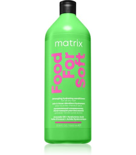 Matrix Food For Soft, 1000 ml, Hair Conditioners for Women, During hair washing, shampoo opens the external hair structure - the cuticle. That's why it's important to give your hair a treatment after washing to reseal the cuticle. And that's exactly what the conditioner from MatrixFood For Soft takes care of. In addition to closing the hair fibre, it ensures its nourishment, hydration and softness, without which beautiful, shiny and healthy hair cannot do without. It will protect the hair from mechanical damage and dryness, as well as smooth the surface and help soften it, which will make it easier to detangle and further styling. Characteristics: provides the necessary hydration strengthens the hair fibre ensures brilliant shine makes untangling and styling easier How to use: Apply after first washing with shampoo. Leave to act for a while, then rinse thoroughly. ...