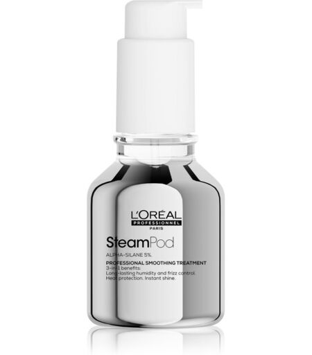 L’Oréal Professionnel Steampod Smoothing Treatment, 50 ml, Heat Protection for Women, The L’Oréal Professionnel Steampod Smoothing Treatment heat protection product gives your hair effective protection against heat damage. Characteristics: effective protection during heat styling smooths the hair fibre adds hydration and shine leaves hair smooth and soft to the touch makes it easy to detangle prevents hair breakage How to use: Spray an appropriate amount onto hair before blow drying, curling or straightening. ...