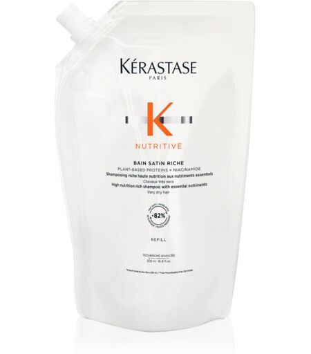 Kérastase Nutritive Bain Satin Riche, 500 ml, Shampoos for Women, In order to keep your hair healthy, shiny and vibrant, it's important to give it the proper care. And that starts with regular hair washing. A shampoo from KérastaseNutritiveBain Satin Riche will help to effectively remove any dirt, grease and styling and cosmetic product residues from the hair and scalp. It gives you a feeling of freshness and cleanliness, and ideally prepares your hair and scalp for further care while supporting the effects of the active ingredients it contains. Characteristics: moisturises intensely regenerates and nourishes hair strengthens the hair fibre How to use: Apply an appropriate amount of shampoo to wet hair. Work up a lather and rinse thoroughly. Repeat if necessary. For best results, follow up with other products from the same range. ...