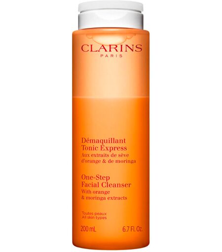 This 2-phase cleanser is the perfect combination of make-up remover and facial lotion for beautiful, clean skin in just one step. This revitalizing facial care with orange and moringa extracts removes all traces of makeup, impurities and dead skin cells. Moringa extract is used for its ability to dissolve dirt particles. To minimize its ecological footprint, Clarins presents this product in an even more eco-friendly bottle with a lighter cap. How to use: Apply in the evening. Shake the bottle well to mix the two phases. Soak a cotton pad and dab the face to remove impurities. Then wipe over the face with the cotton pad. It is not necessary to rinse with water. ...
