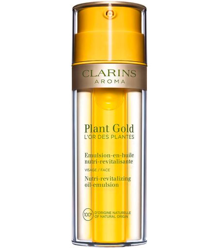 2-phase oil fluid for the face. Inspired by the manual application methods of Clarins beauticians, Clarins has developed a new two-chamber bottle dedicated to Plant Gold - L'Or des Plantes. A unique double formula: the legendary Huile Orchidée Bleue by Clarins combined with a delicate emulsion, which when applied merge into a light, non-greasy texture, giving the skin comfort, vitality and radiance. Application: Apply morning and/or evening to cleansed face. Apply with gentle pressure movements, working in to the neck and décolleté. Avoid the eye area. ...
