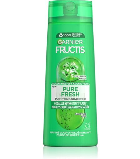 Garnier Fructis Pure Fresh, 250 ml, Shampoos for Women, In order to keep your hair healthy, shiny and vibrant, it's important to give it the proper care. And that starts with regular hair washing. A shampoo from GarnierFructisPure Non-Stop Cucumber Fresh will help to effectively remove any dirt, grease and styling and cosmetic product residues from the hair and scalp. It gives you a feeling of freshness and cleanliness, and ideally prepares your hair and scalp for further care while supporting the effects of the active ingredients it contains. Characteristics: washes hair and cleans the scalp perfumes hair gently regenerates and nourishes hair How to use: Apply an appropriate amount of shampoo to wet hair. Work up a lather and rinse thoroughly. Repeat if necessary. ...