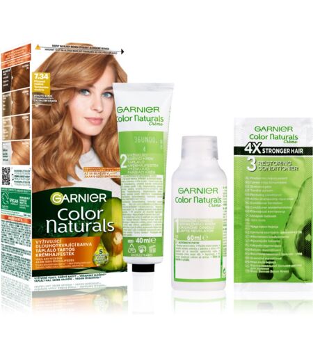 Garnier Color Naturals Creme, 1 pc, Hair colouring for Women, Do you want to achieve a long-lasting vibrant colour, cover grey hair or completely change the colour of your hair? Permanent hair colour from GarnierColor Naturals Creme will give you the desired result. It will give your hair an intense colour shade and vibrant shine, but unlike semi-permanent colours, rinses and tinted shampoos, it won't gradually wash out or fade, so your perfectly coloured hair will last for weeks. The pigments penetrate deep into the hair fibre, which guarantees a long-lasting colour effect, long washing out time and perfect coverage of grey hair. Whether your goal is to unify your natural hair colour or change it completely, this permanent colour will not disappoint. Characteristics: colour stays beautiful and rich adds shine to matte hair nourishes and hydrates hair long-lasting effect ...