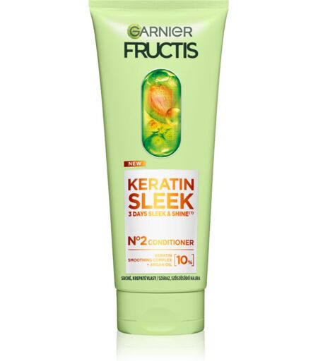 Garnier Fructis Keratin Sleek, 200 ml, Hair Conditioners for Women, During hair washing, shampoo opens the external hair structure - the cuticle. That's why it's important to give your hair a treatment after washing to reseal the cuticle. And that's exactly what the conditioner from GarnierFructisKeratin Sleek takes care of. In addition to closing the hair fibre, it ensures its nourishment, hydration and softness, without which beautiful, shiny and healthy hair cannot do without. It will protect the hair from mechanical damage and dryness, as well as smooth the surface and help soften it, which will make it easier to detangle and further styling. Characteristics: smooths and acts against frizz makes untangling and styling easier protects hair against damage seals the hair’s surface, making it more resilient ensures brilliant shine improves the structure of the hair Ingredients: argan oil keratin How to use: Apply after first washing with shampoo. Leave to act for a while, then rinse thoroughly. ...