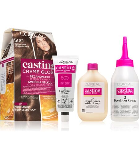 L’Oréal Paris Casting Creme Gloss, 1 pc, Hair colouring for Women, Semi-permanent hair dye L’Oréal Paris Casting Creme gives your hair intense colour and radiant shine. Characteristics: ideal for covering first grey hair creates natural reflections in your hair gentle on hair Ingredients: no ammonia How to use: Follow the instructions included. ...