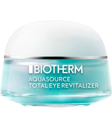 The wake-up call for the eyes. Cools instantly by -2° C*. Biotherm's first wake-up call for the eyes revitalizes your eye area. Based on the moisturizing ingredients of Aquasource and enriched with a special combination of a cooling, decongesting, brightening and softening complex, Aquasource Total Eye Revitalizer gives an instant cooling effect. Eye bags and dark circles are reduced, dryness lines are softened and the eye area is continuously hydrated. *Measurement of skin temperature after 2 minutes - 26 women. The texture Super fresh, lightweight texture that gives the eye area a natural finish and silky soft feel. Aquasource Total Eye Revitalizer is also suitable for sensitive skin, sensitive eyes and contact lens wearers (dermatologically and ophthalmologically tested). Application: Apply morning and evening to the eye area and massage gently. ...