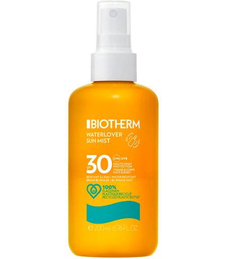 Biotherm Waterlover Sun Mist SPF 30 is a transparent sunscreen spray that is also ideal for sensitive skin. It gives a pleasant feeling of freshness and moisturizes. The light texture is quickly absorbed, sticky and non-greasy. Application: Shake well before use. Before sun exposure, spray a generous amount of the spray first into the hands, then spray evenly all over the body. Allow to absorb briefly and spray again, as small amounts may reduce protective performance. Apply sunscreen several times to maintain photoprotection, especially after being in the water, drying off and sweating. Do not stay too long in the sun and avoid intense midday sun, even if you use a sunscreen, as it does not provide 100% protection even with a high SPF. ...