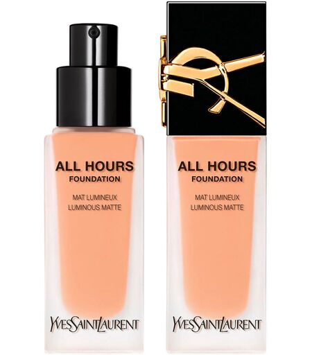 Yves Saint Laurent Beauty's ALL HOURS FOUNDATION combines full coverage and lightweight comfort for up to 24H - without compromise. It gives a radiant matte look at any time. The innovative formula gives a tangibly soft, smooth and nourished skin. The waterproof and breathable foundation with hyaluron is noticeably moisturizing and lays on the skin as light as a feather. It covers shine reliably and long-lasting and leaves the skin radiant. Application: Apply a few drops of ALL HOURS FOUNDATION by Yves Saint Laurent Beauty to the back of your hand. Use either a make-up brush, fingers or sponges to spread the foundation. Dab the foundation onto the forehead, cheeks, nose and chin. Then blend the matte foundation from the center of the face outwards. Make sure that the foundation is blended well, especially on the neck, ears and hairline. ...