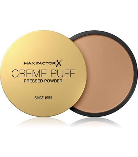 Max Factor Creme Puff, 14 g, Powders for Women, Make sure your makeup lasts longer and has a perfect finish. The Max Factor Creme Puff powder sets makeup to prevent it from smudging and settling in wrinkles. It also controls excessive sebum, preventing problem areas from becoming overly shiny. It leaves your skin beautifully soft, matt and velvety, while the natural blurring effect helps visually conceal overly visible pores and other skin imperfections. Characteristics: evens skin tone non-drying ensures a fresh look gives skin a velvety effect absorbs excess oil without drying the skin How to use: Set your makeup using a sponge or brush. If you want to use powder instead of foundation, use a damp sponge to apply it. Use a dry sponge to powder your face. ...