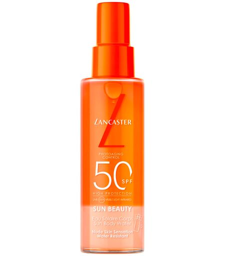 Lancaster Sun Beauty Sun Body Water SPF 50 is the ultimate ally against photo-ageing. Our Full-Light TechnologyTM provides 10 times more sun protection*, while our Tan Activator Complex delivers a legendary golden tan with half the sun exposure. The ultra-lightweight and non-greasy dual-phase sun spray is very easy to apply, absorbs quickly into the skin and leaves a non-sticky finish. *Provides targeted protection against the full sun spectrum compared to pure UVB and UVA protection. In addition, no sun protection product can provide complete protection against the sun's rays. Excessive sun exposure is a serious health risk. Protection against light-induced skin ageingSuitable for all skin typesComprehensive sun protectionHelps to repair skin damage caused by UV raysWaterproof formulationLight textureEasy to applyAbsorbs quicklyWith an invisible finish The Sun Beauty Sun Body Water SPF 50 from Lancaster, the No. 1 prestige sun protection brand in Europe1, protects the skin beyond conventional UV protection. Exposure to sunlight is responsible for 80% of visible signs of ageing2, a process known as photo-ageing. Since UVA and UVB rays make up only 10% of the solar spectrum, our formulation goes beyond conventional sun protection and protects against visible light and infrared rays. Our Full-Light TechnologyTM provides 10 times more sun protection*. 1Total, 5 European (FR, DE, UK, IT & ES) prestige markets & brands. In value & units, 2017 to June 2024. Circana Group L.P/BeautyTrends®. 2TheWorld Health Organization & Yale Medicine, study on light-induced skin aging. Application: Shake well before use. Apply liberally to wet or dry skin all over the body before going out in the sun. Travel size sunscreen can be taken anywhere for easy application and touch-ups on the go. Reapply frequently to maintain protection*. *In addition, no sunscreen product can provide complete protection from the sun's rays. Overexposure to the sun is a serious health risk. Lancaster Lancaster Monaco offers exceptional skin care products that protect, repair and improve the skin. Warning: Apply sunscreen liberally to the entire body before sun exposure. Reapply several times to maintain protection. This is particularly important when sweating or after swimming and drying off. Do not expose infants and small children to direct sunlight. Excessive sun exposure poses a serious health risk, despite the use of sunscreen. ...