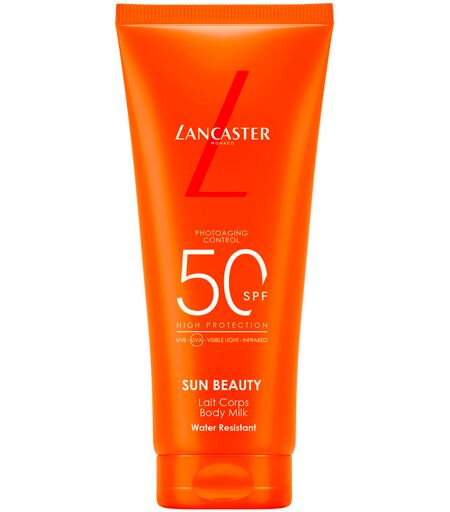 Lancaster Sun Beauty Body Milk SPF50 is the ultimate ally against photo-ageing. Our Full-Light TechnologyTM provides 10 times more sun protection*, while our Tan Activator Complex delivers a legendary golden tan with half the sun exposure. The lightweight, non-greasy body milk absorbs instantly into the skin, leaving it feeling comfortable and with an invisible, velvety finish. *By providing targeted protection against the full sun spectrum compared to pure UVB and UVA protection. Furthermore, no sun protection product can offer complete protection against the sun's rays. Excessive sun exposure is a serious health risk. Protection against light-induced skin ageingSuitable for all skin typesComprehensive sun protectionHelps to repair skin damage caused by UV raysWaterproof formulationLight textureEasy to applyAbsorbs immediatelyWith an invisible finish Sun Beauty Body Milk SPF 50 from Lancaster, the No. 1 prestige sun protection brand in Europe1, protects skin beyond traditional UV protection. Exposure to sunlight is responsible for 80% of visible signs of ageing2, a process known as photo-ageing. Since UVA and UVB rays make up only 10% of the solar spectrum, our formulation goes beyond conventional sun protection and protects against visible light and infrared rays. Our Full-Light TechnologyTM provides 10 times more sun protection*. 1Total, 5 European (FR, DE, UK, IT & ES) prestige markets & brands. In value & units, 2017 to June 2024. Circana Group L.P/BeautyTrends®. 2TheWorld Health Organization & Yale Medicine, study on light-induced skin aging. Application: Apply generously to the entire body before going out in the sun. Travel-size sunscreen can be taken anywhere for easy application and touch-ups on the go. Reapply frequently to maintain protection*. *In addition, no sunscreen product can provide complete protection from the sun's rays. Overexposure to the sun is a serious health risk. Lancaster Lancaster Monaco offers exceptional skin care products that protect, repair and improve the skin. Warning: Apply sunscreen liberally to the entire body before sun exposure. Reapply several times to maintain protection. This is particularly important when sweating or after swimming and drying off. Do not expose infants and small children to direct sunlight. Excessive sun exposure poses a serious health risk, despite the use of sunscreen. ...