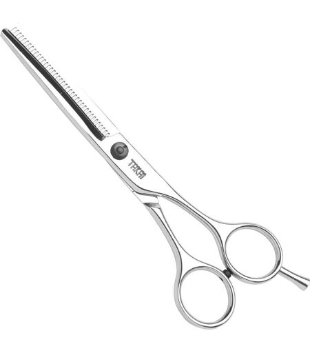 6" modeling scissors with 40 teeth. For all effilation techniques on any hair. The convex and hollow ground scissor blades are made of Enrichi steel. This is Hitachi 440 stainless steel enriched with vanadium and molybdenum. Vanadium provides hard blades and increases their service life. Molybdenum enhances the anti-corrosion effect.Cutting pressure individually and precisely adjustable with adjusting screw.Classic straight shape with adjustable finger hook, scissors can therefore be used on both sides and are therefore suitable for right- and left-handers. ...