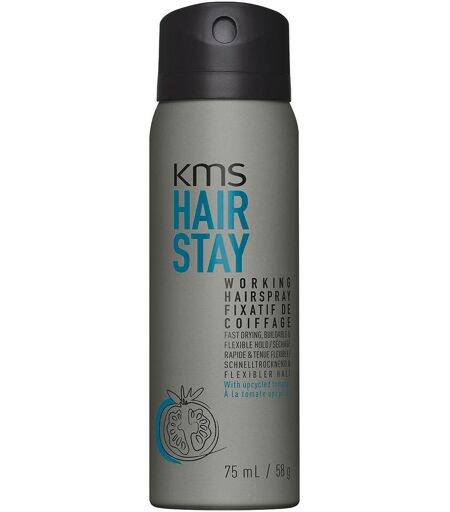KMS HairStay Working Hairspray provides up to 72 hours of buildable hold and eliminates frizz and flyaways by up to 90%. The quick-drying formula provides a natural finish without stickiness and is easy to brush out and touch up without flaking. Formulated with upcycled tomato, known as a powerful antioxidant, it protects against UV and environmental damage and provides heat protection up to 230°C/ 446°F for styling with hot tools. Application: Spray onto dry hair to work and shape. Finally, spray all over the hair to set the look. ...