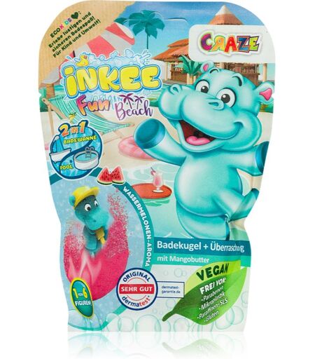 Craze INKEE Fun Beach, 1 pc, Bath bombs for children For Kids, Do you love long baths in nice hot water? Make your own spa right at home. Craze INKEE Fun Beacheffervescent bath bomb will provide you with the relaxation you deserve after a long day. As it dissolves in the water, it releases gentle bubbles, turning bath-time into a relaxing ritual that will wash away stress and leave your body and mind in harmony. Characteristics: has a pleasant fragrance with a playful children’s motif takes gentle care of your child's skin creates a rich lather How to use: Add to hot water and allow to foam. ...
