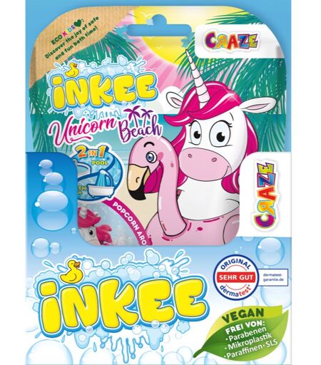 Craze INKEE Unicorn Beach, 1 pc, Bath bombs for children For Kids, Do you love long baths in nice hot water? Make your own spa right at home. Craze INKEE Unicorn Beacheffervescent bath bomb will provide you with the relaxation you deserve after a long day. As it dissolves in the water, it releases gentle bubbles, turning bath-time into a relaxing ritual that will wash away stress and leave your body and mind in harmony. Characteristics: has a pleasant fragrance hydrates and nourishes the skin creates a rich lather with a playful children’s motif How to use: Put into a warm bath and allow to dissolve. ...
