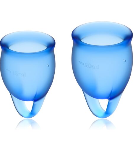Satisfyer Feel Confident Menstrual Cup, 2 pc, Menstrual Cups A comfortable and eco-friendly solution to help you feel good during your period. Swap your single-use period products for a handy Satisfyer Feel Confident Menstrual Cup menstrual cup you can use again and again. The set contains: Menstrual Cup 15 ml Menstrual Cup 20 ml Characteristics: eco-friendly alternative to feminine hygiene products with a loop for easy removal reusable adjusts to your anatomy easy to insert easy to clean in various sizes for maximum comfort suitable for sporting activities during your period hypoallergenic material silicone non-porous surface with a cloth pouch How to use: Follow the instructions. Always rinse thoroughly under running water. Can be boiled clean or sterilised. For the first insertion, or in the case of mild blood flow, we recommend using a lubricant. ...