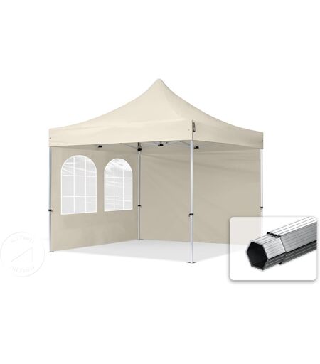 TOOLPORT 3x3m PES 800 Pop Up Gazebo PROFESSIONAL Aluminium 40 mm, incl. 2 side panels with Windows, cream - (600158)